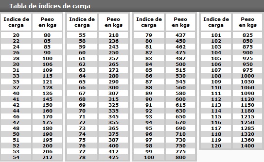 ÍNDICE DE CARGA Y VELOCIDAD DE LOS NEUMÁTICOS